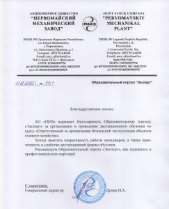 Благодарственные письма компании Эксперт в Оренбурге